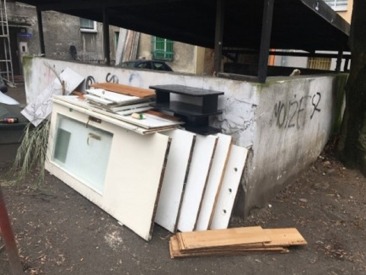Przepełniona altana śmietnikowa na Dekerta