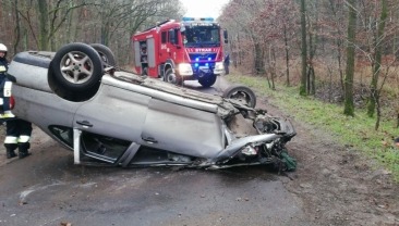 Kolizja na DK22 w Krasowcu. Auto wpadło do rowu, obowiązuje ostrzeżenie przed gołoledzią
