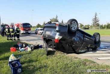 Toyota uderzyła w forda na rondzie i dachowała [zdjęcia]