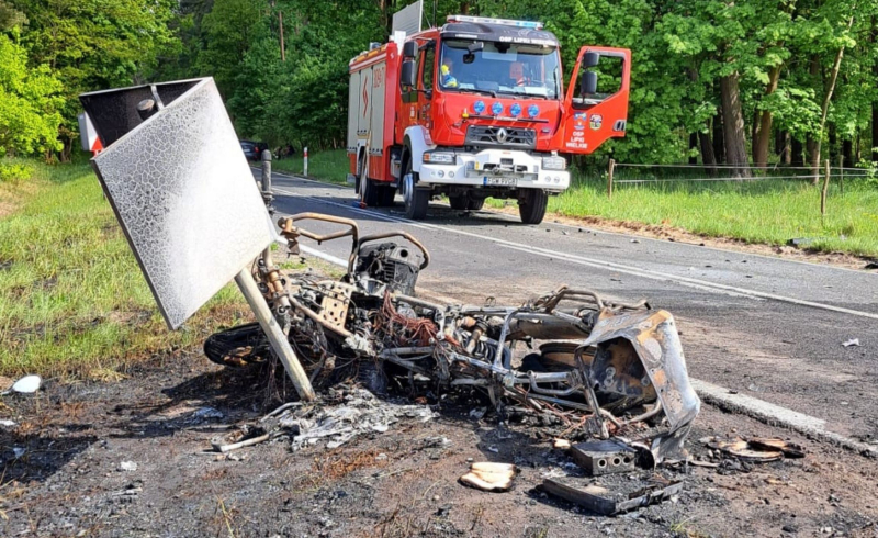 Motocyklista zginął w wypadku koło Gorzowa. Motocykl stanął w ogniu