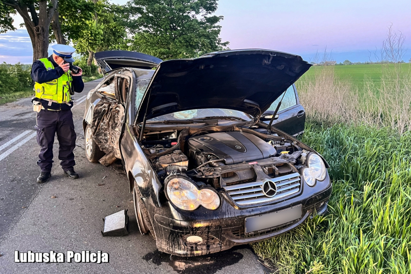 3/3 Mercedes uderzył w drzewo. Wypadek koło Strzelec Krajeńskich