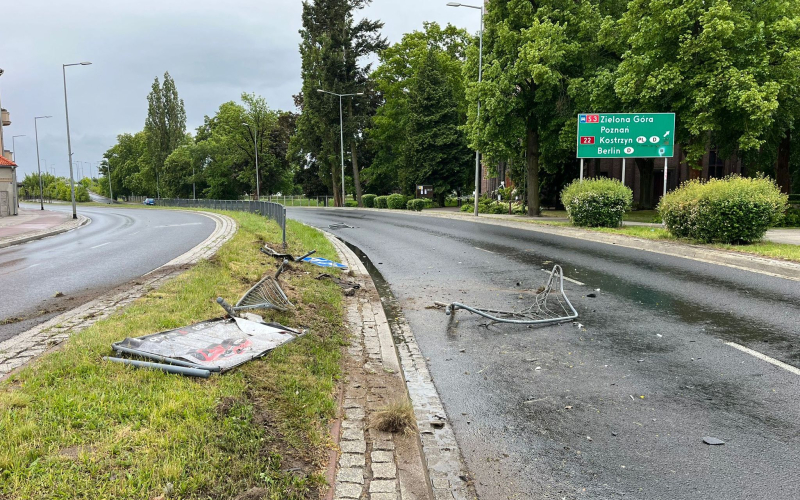 1/5 Pijany kierowca przebił bariery i uderzył w latarnię przy ul. Grobla