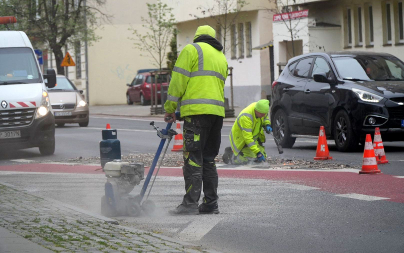 Usuwanie oznakowania poziomego na Dąbrowskiego