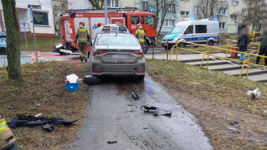 Kierujący taksówką uderzył w znaki i słupki na Fredry