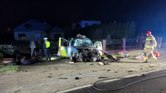 Wypadek w Bogdańcu. Citroen uderzył w betonowe ogrodzenie
