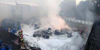 Pożar na terenie firmy w Stanowicach. Paliły się pojemniki z bateriami i akumulatorami
