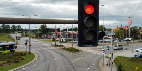 Włączona sygnalizacja świetlna na rondzie Santockim