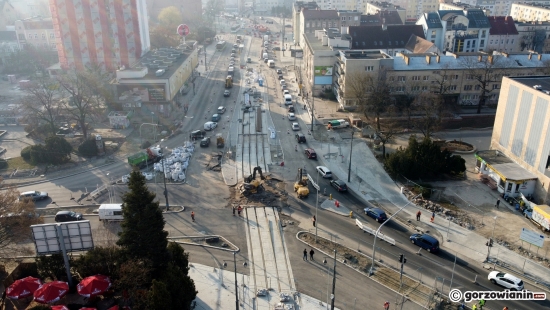 Prace na skrzyżowaniu ul. Chrobrego, Jagiełły i Wybickiego