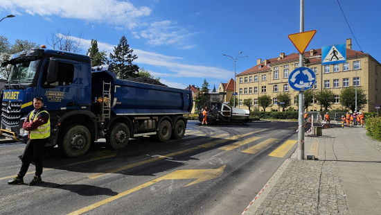 Trwa wylewanie asfaltu na zamkniętym rondzie Kosynierów Gdyńskich