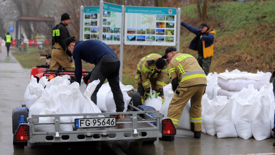 Układanie worków z piaskiem przy ul. Teatralnej w Gorzowie