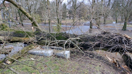 Wichura w Gorzowie. Złamane drzewo spadło na schody w parku Róż