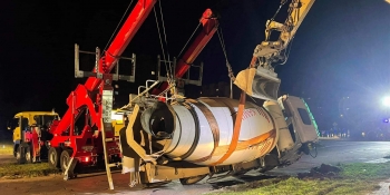 Akcja podnoszenia przewróconej betoniarki
