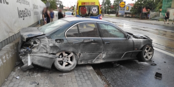 Kierujący BMW uderzył w mur budynku na Warszawskiej