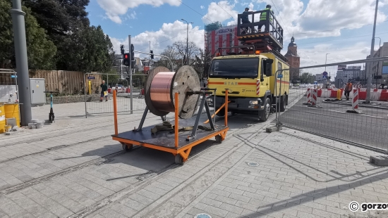 Montaż trakcji tramwajowej na Chrobrego