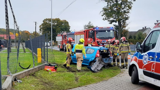 Kierująca peugeotem uderzyła w ogrodzenie w Motylewie