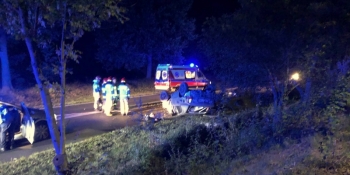 BMW uderzyło w znak i urwało koło na rondzie Ofiar Katynia