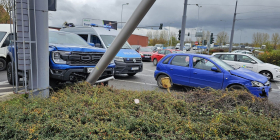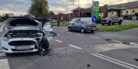 Wypadek na rondzie Santockim. Zderzenie opla i forda