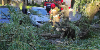 Wierzba spadła na zaparkowane auta przy Dzieci Wrzesińskich