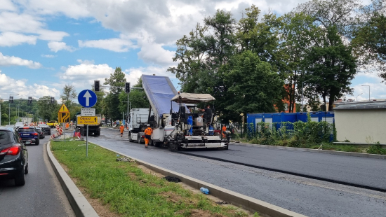 Wylewanie asfaltu na skrzyżowaniu ul. Słowiańskiej i Kosynierów Gdyńskich