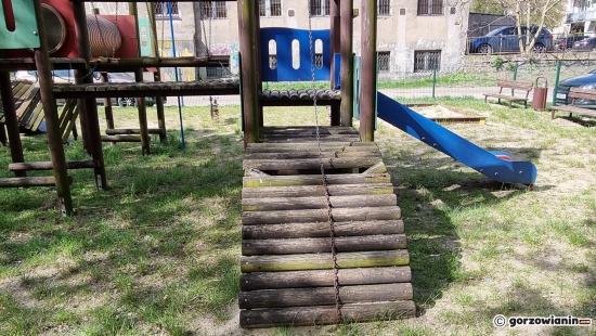 Zaniedbany plac zabaw przy Filharmonii Gorzowskiej
