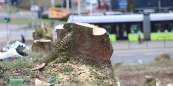 Wycinka drzew przy ul. Warszawskiej w Gorzowie. Tutaj powstanie Aldi