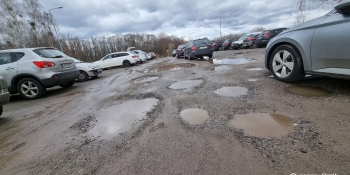 Dziurawy parking przy szpitalu na Dekerta w Gorzowie