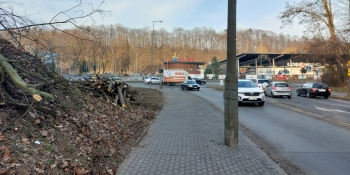 Kierowcy omijają po chodniku i ścieżce rowerowej zamknięty fragment ul. Piłsudskiego