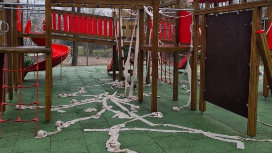 Plac zabaw nad Kłodawką obrzucony papierem toaletowym