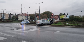 Zderzenie audi i skody na rondzie Santockim