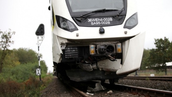 Zniszczony szynobus pod zderzeniu z autem