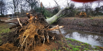 Ogromne drzewo wyrwane z korzeniami w parku Kopernika