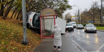 Wiatr przewrócił dostawcze auto na barierki na S3