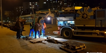 Wieczorne prace przy wylewaniu asfaltu na Kasprzaka