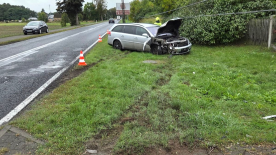 Dachowanie opla na drodze z Kłodawy do Barlinka