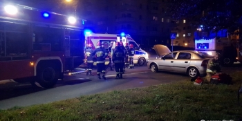 BMW uderzyło w znak i urwało koło na rondzie Ofiar Katynia