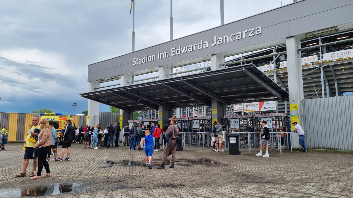 Kibice powoli wchodzą na stadion.