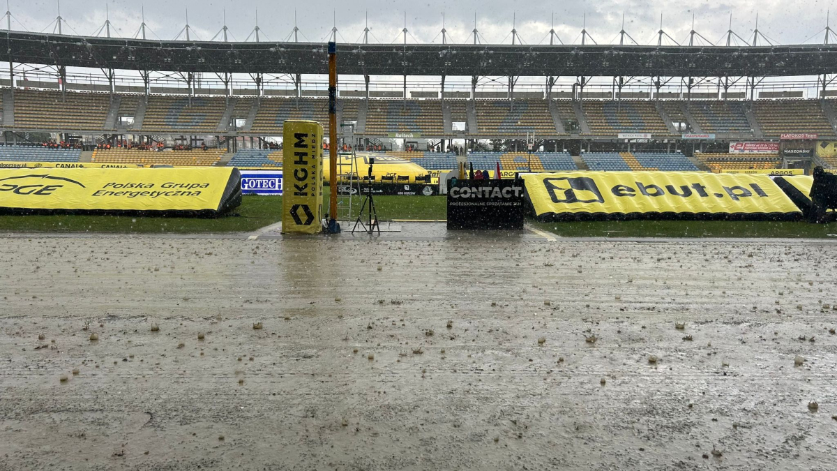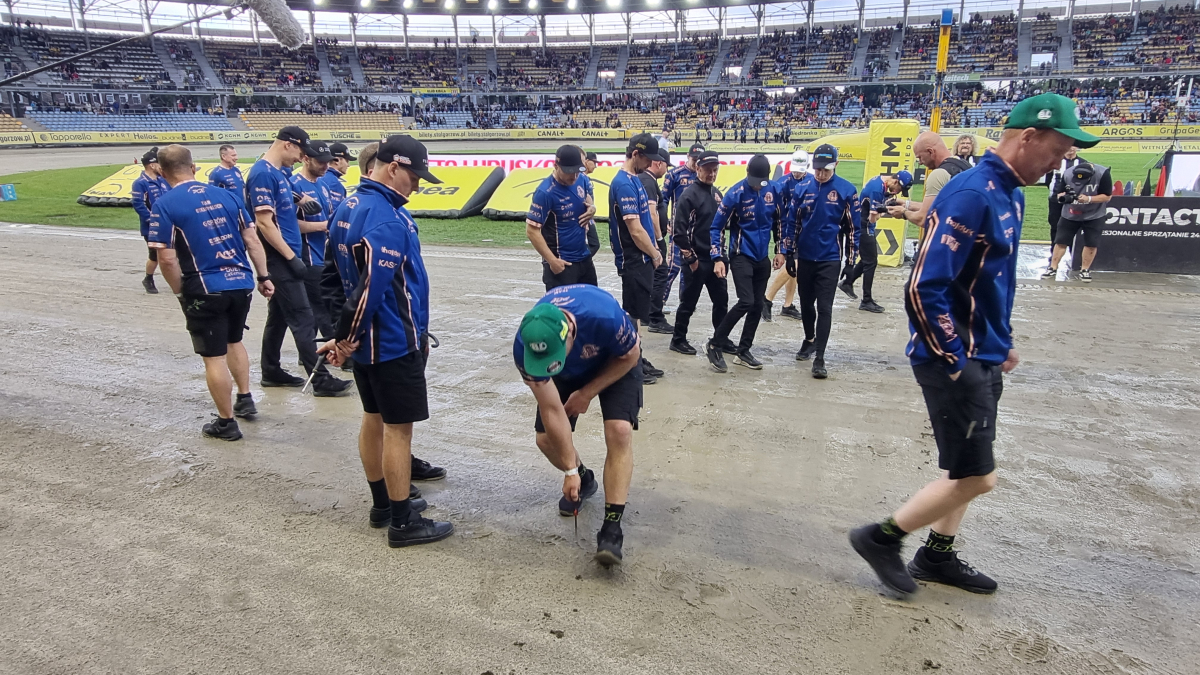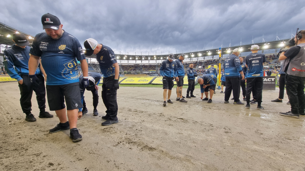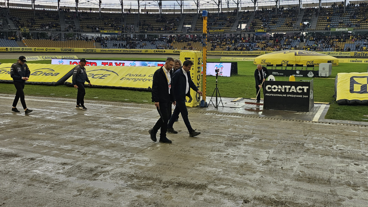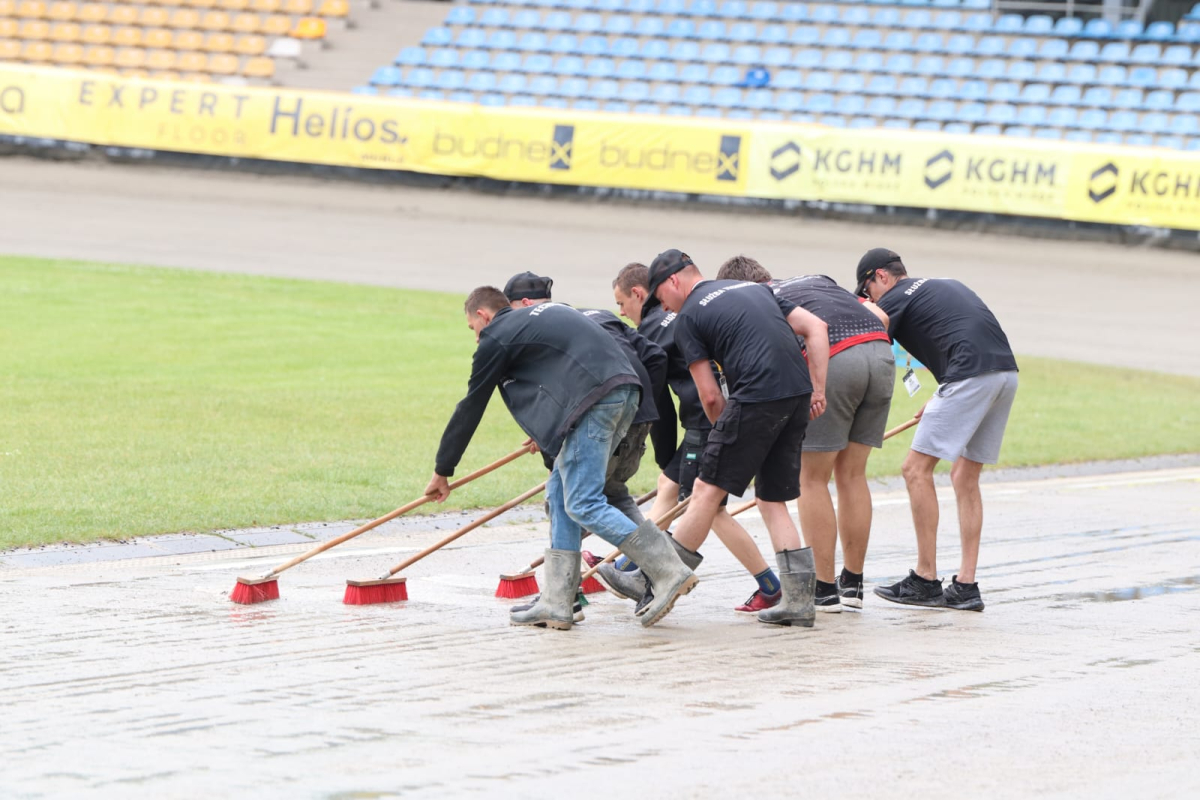 Upady nieco ustały. Zaczynają się prace porządkowe na torze. Na chwilę obecną nie ma żadnych informacji, jakoby mecz miałby dziś się nie odbyć