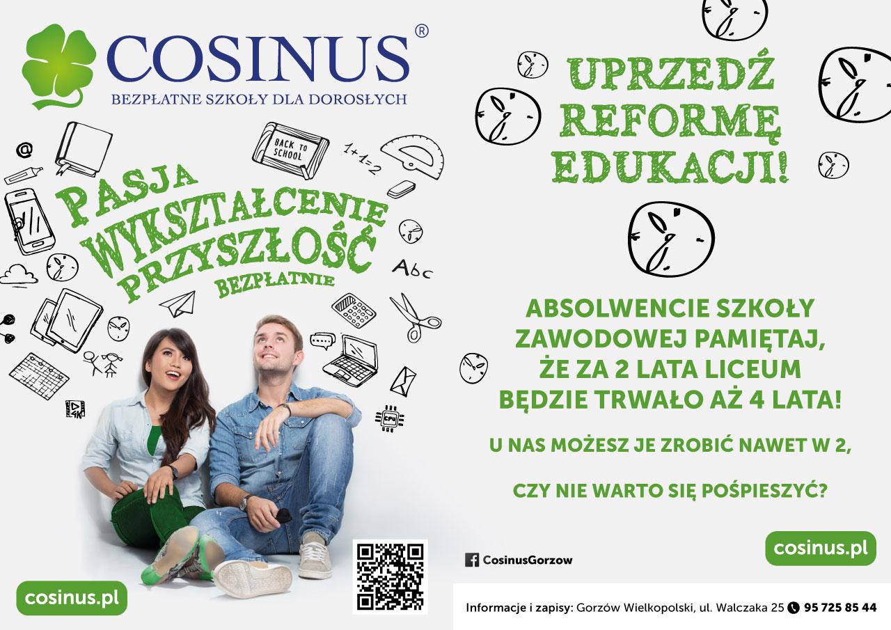 Przyjazna atmosfera, profesjonalna kadra, dobrze wyposażone pracownie i ciekawe zajęcia. To wszystko powoduje, że słuchacze wybierają właśnie szkołę Cosinus. Poza zajęciami animujemy czas wolny, oferując naszym słuchaczom rabaty w zaprzyjaźnionych restauracjach i klubach, a także bilety na wydarzenia kulturalne i sportowe. Z nami nie będziecie się nudzić, a weekendy zaliczyć będzie można zarówno do udanych, jak i produktywnych.