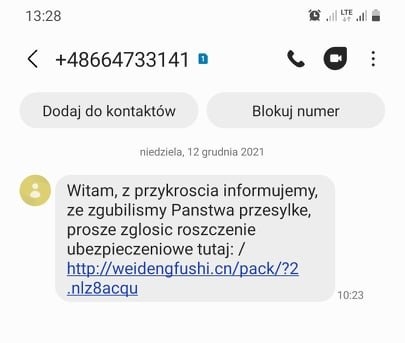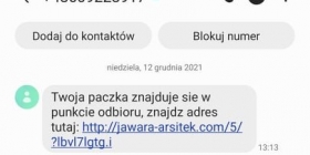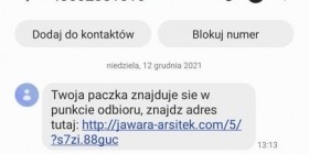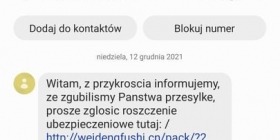 Pierwszą wiadomość następującej treści nasz czytelnik dostał o godz. 10.23. „Witamy, z przykrością informujemy, że zgubiliśmy Państwa przesyłkę, proszę zgłosić roszczenie ubezpieczeniowe tutaj (w tym miejscu pojawił się fałszywy link z wirusem)”. Kolejna wiadomość o otrzymana o godz. 13.13 brzmiała następująco: „Twoja paczka znajduje się w punkcie odbioru, znajdź adres tutaj (w tym miejscu pojawił się fałszywy link z wirusem)”. Równocześnie przyszedł kolejny sms o tej samej treści, ale z innego numeru.