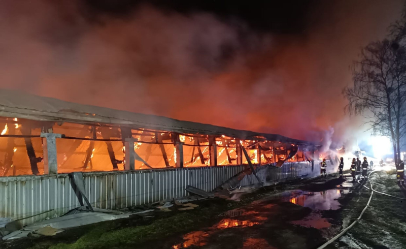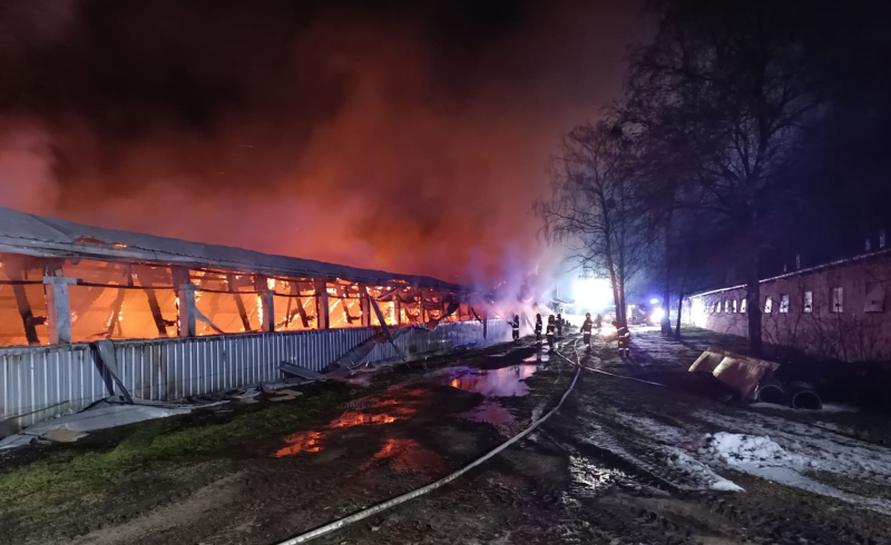 godz. 22 - Obecnie na miejscu pracuje 12 zastępów straży pożarnej. Całkowitemu spaleniu uległ kurnik o powierzchni 2 tys. m.kw. Budynek był pusty, dopiero przygotowany do zasiedlenia przez pisklęta.