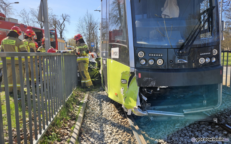 W czwartek 3 kwietnia o godz. 13.11 dyżurny gorzowskiej straży pożarnej otrzymał zgłoszenie o wypadku przy ul. Walczaka. Do zdarzenia doszło na przejeździe tramwajowym na wysokości przystanku tramwajowego "Dowgielewiczowej". Na miejsce zostały wysłane dwa zastępy straży pożarnej, policja i pogotowie.