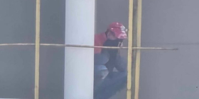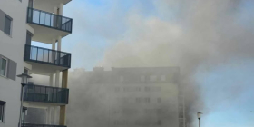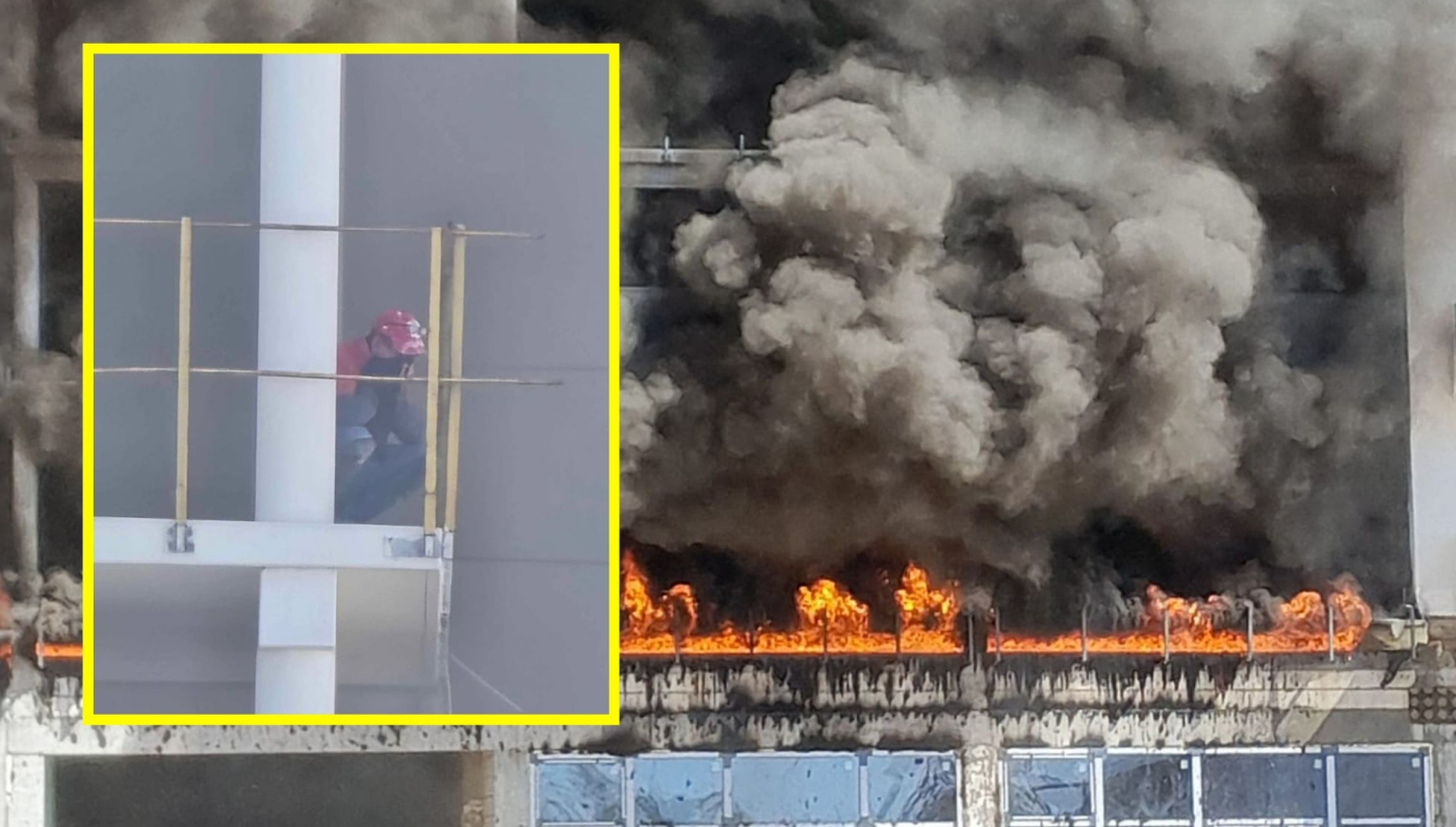 W wyniku pożaru i silnego zadymienia. Na jednym z balkonów został uwięziony pracownik budowy. Mężczyzna zasłonił twarz materiałem, aby nie wdychać dymu.