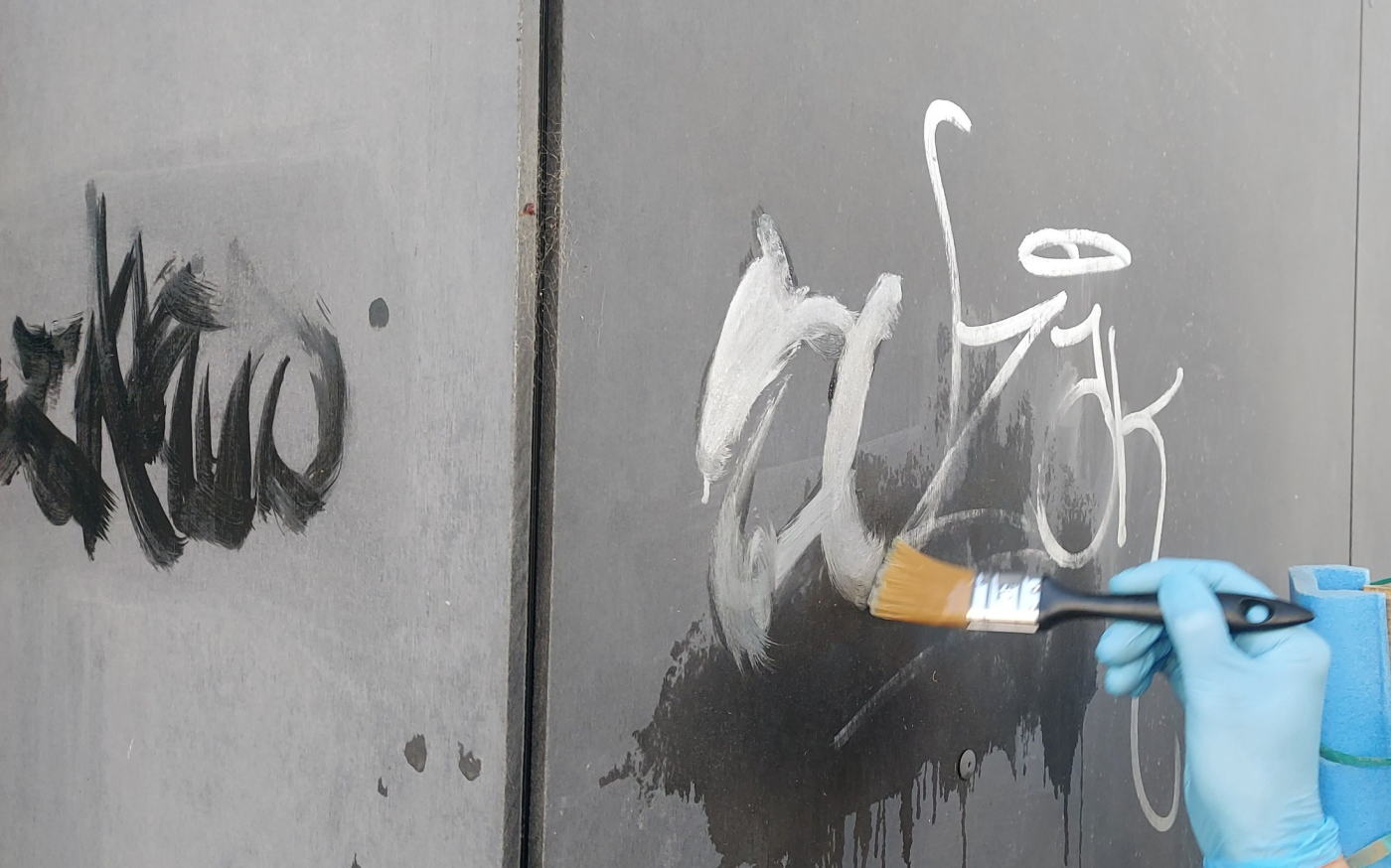 Bazgroły na świeżych płytach zauważono szybko. W piątek, 25 kwietnia Marta Bejnar-Bejnarowicz, po konsultacji z producentem materiału, zwróciła się z prośbą o pomoc w usunięciu napisów do Tomasza Rybaka ze Stowarzyszenia na rzecz Estetyki Gorzowa. Poprosiła, aby pomógł znaleźć środek chemiczny, który usunie graffiti, nie niszcząc przy tym płyt. Producent zadeklarował, że w razie uszkodzenia materiału wymieni go na nowy.
