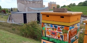 W tym sezonie zamieszkały tam trzy rodziny pszczele. Lokalizacja sprawdziła się doskonale. Otoczenie łąk, działek, parków i rozlewisk Warty daje pszczołom dobre warunki do pracy.