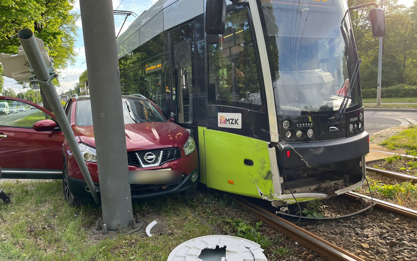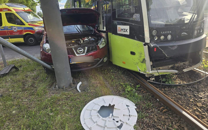 Kierujący samochodem osobowym marki nissan wjechał wprost pod tramwaj linii nr 1, który jechał w kierunku krańcówki na Fieldorfa-Nila. Wszystko wskazuje na to, że kierowca zignorował znak stop przejeżdżając przez torowisko i doprowadził do zderzenia z tramwajem. Nissan uderzył jeszcze w słup z lustrem drogowym, które zostało uszkodzone.