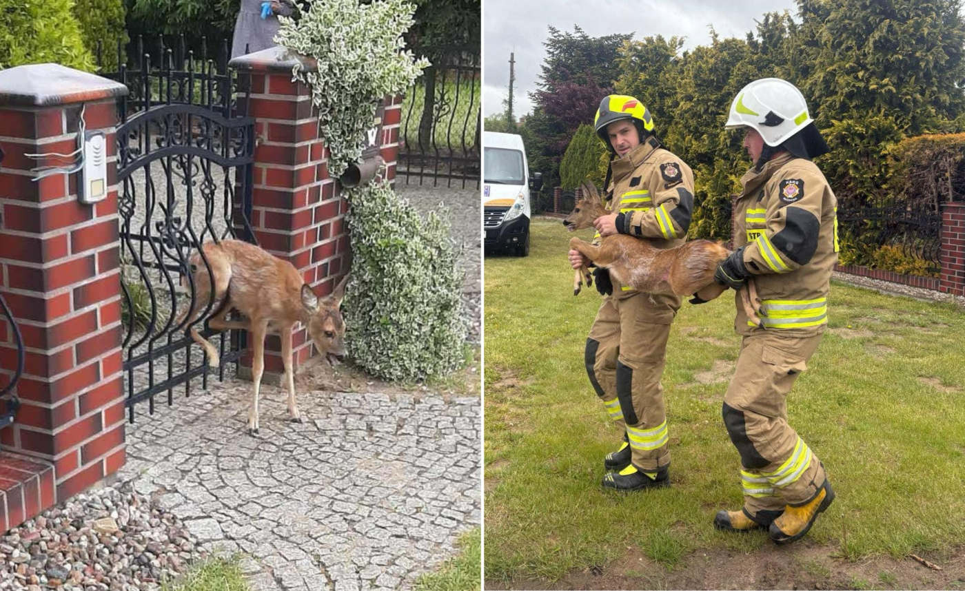Kiedy strażacy dotarli na miejsce, okazało się, że młoda sarna utknęła między prętami furtki. Zwierzę próbowało przecisnąć się pomiędzy metalowymi prętami, ale jego ciało zaklinowało się w wąskim prześwicie. Przednie nogi sarny znajdowały się już po jednej stronie ogrodzenia, podczas gdy tylne utknęły po drugiej, uniemożliwiając jej dalszy ruch.