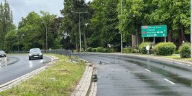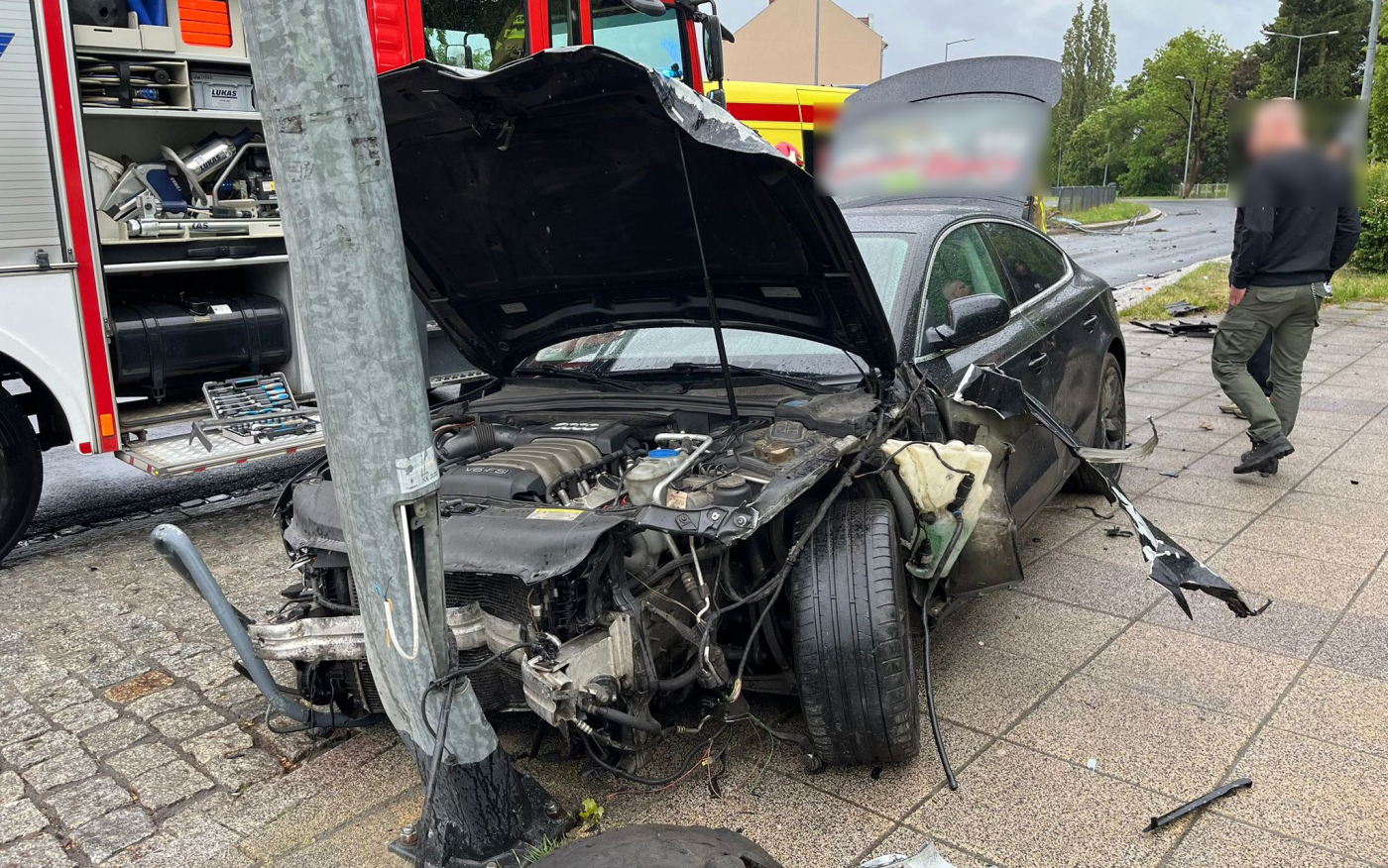 Kierujący samochodem osobowym marki audi jechał ul. Grobla od strony ronda Grobla w kierunku ronda św. Jerzego. W pewnym momencie stracił panowanie nad kierownicą, przebił bariery rozdzielające pasy ruchu, a następnie roztrzaskał auto o latarnię po przeciwległej stronie ulicy. Za kierownicą audi siedział pijany obywatel Ukrainy.