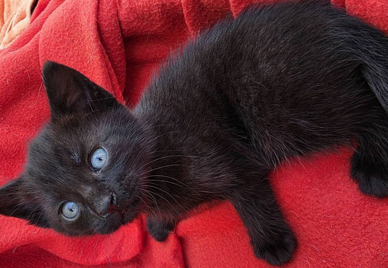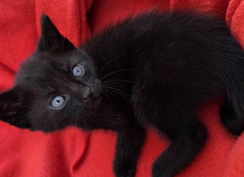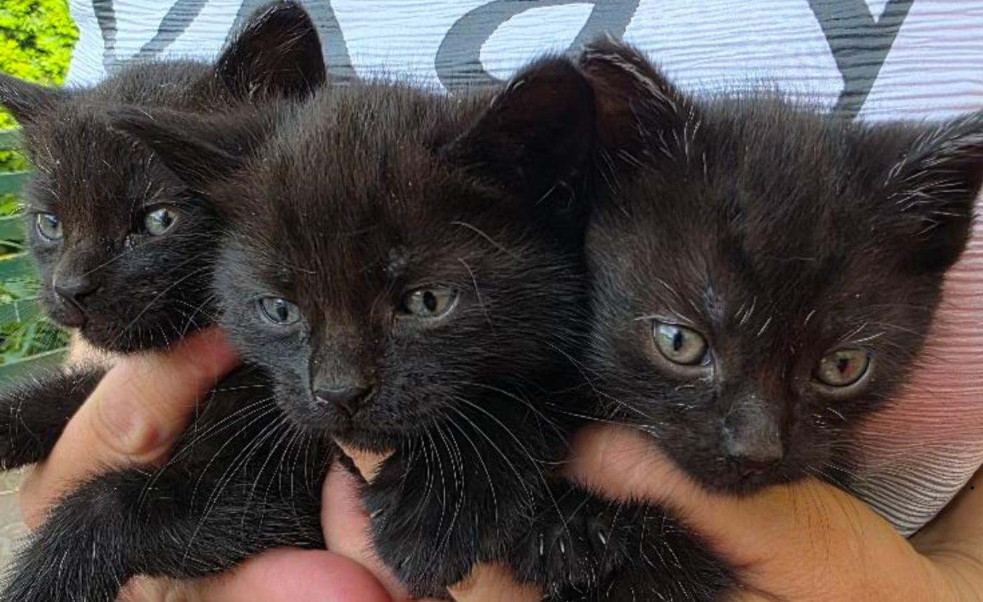 Kotki mają około 6 tygodni. Są czarne i – co ważne – jedzą już samodzielnie. To zwiększa ich szanse na adopcję.