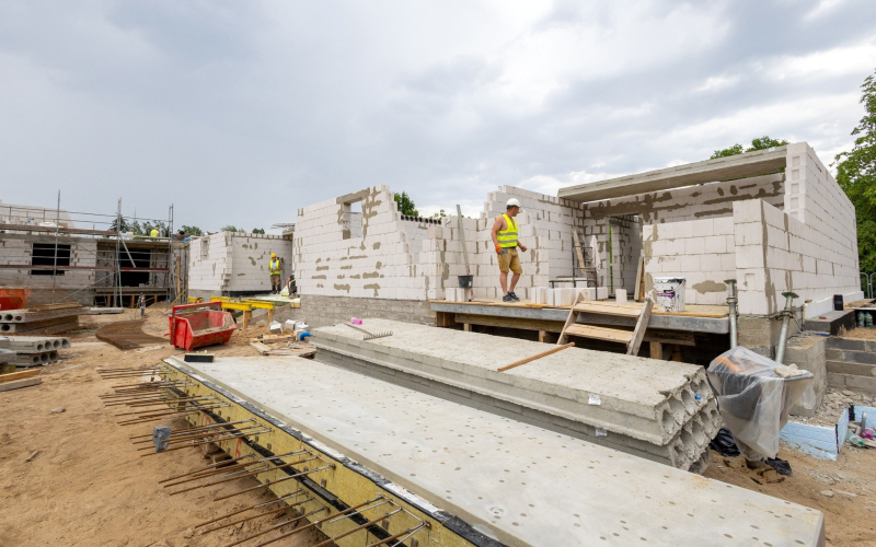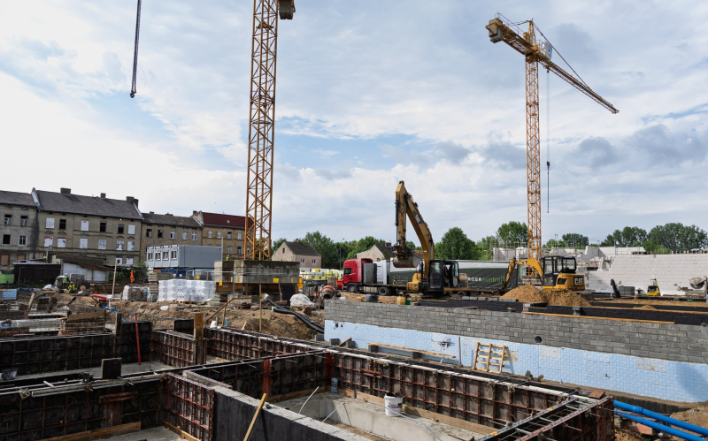 Na początku kwietnia zakończyło się zbrojenie fundamentów, a teraz mury budynku szybko rosną. Inwestycja przebiega zgodnie z planem.