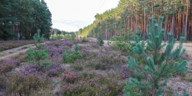 Kwitnące wrzosy, leśne ścieżki, młode sosny i otwarta przestrzeń. Tak wygląda Suche Wrzosowisko w Nadleśnictwie Kłodawa. To inny klimat niż typowy las - wrzosy tworzą fioletowy dywan, który świetnie wygląda na żywo i na zdjęciach.